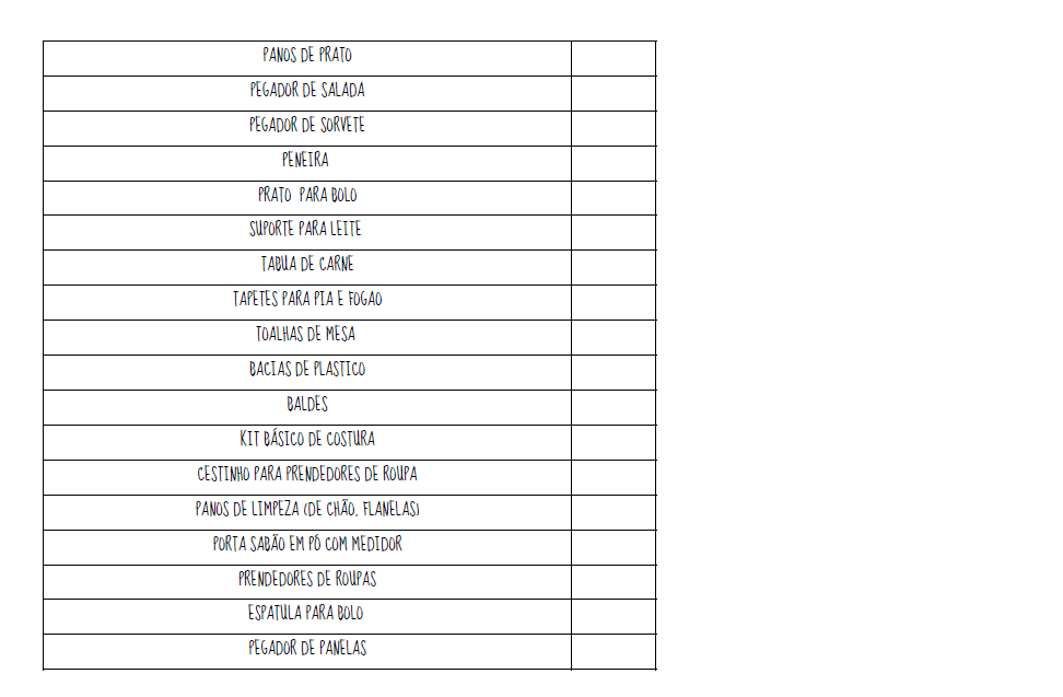 Lista simples para pedir no chá de casa nova.